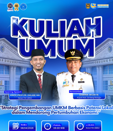 Kuliah umum dilaksanakan pada Rabu, 8 April 2026, pukul 09.00 WIB, bertempat di Aula Fakultas Agama Islam (FAI) UMSU. Kegiatan berlangsung dengan antusiasme tinggi dari peserta yang terdiri dari mahasiswa dan civitas akademika.